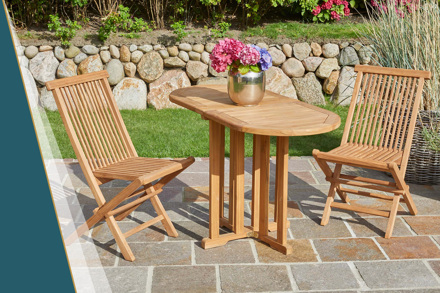 Klappstuhl Ela 2er Set Teak Gartenstuhl 47x43x89cm